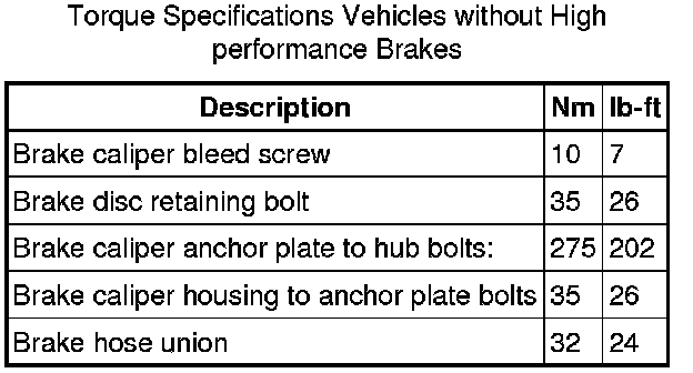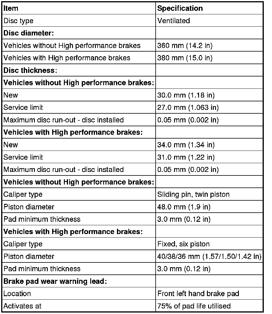 Front Disc Brake Specifications