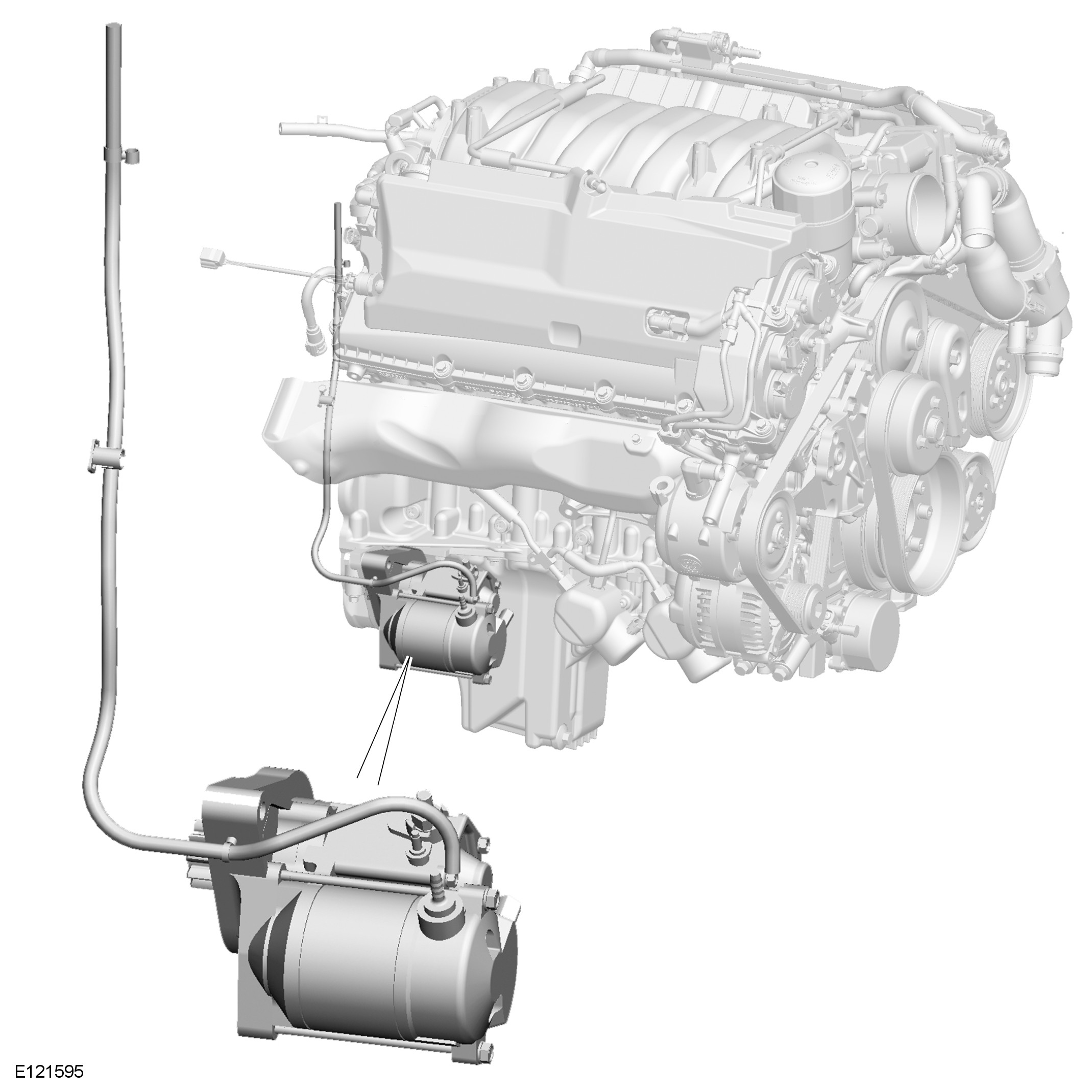 The starter motor is located on the rear right side of the engine sump. The motor is installed in an aperture in the sump and the pinion is engaged with the ring gear of the crankshaft drive plate.