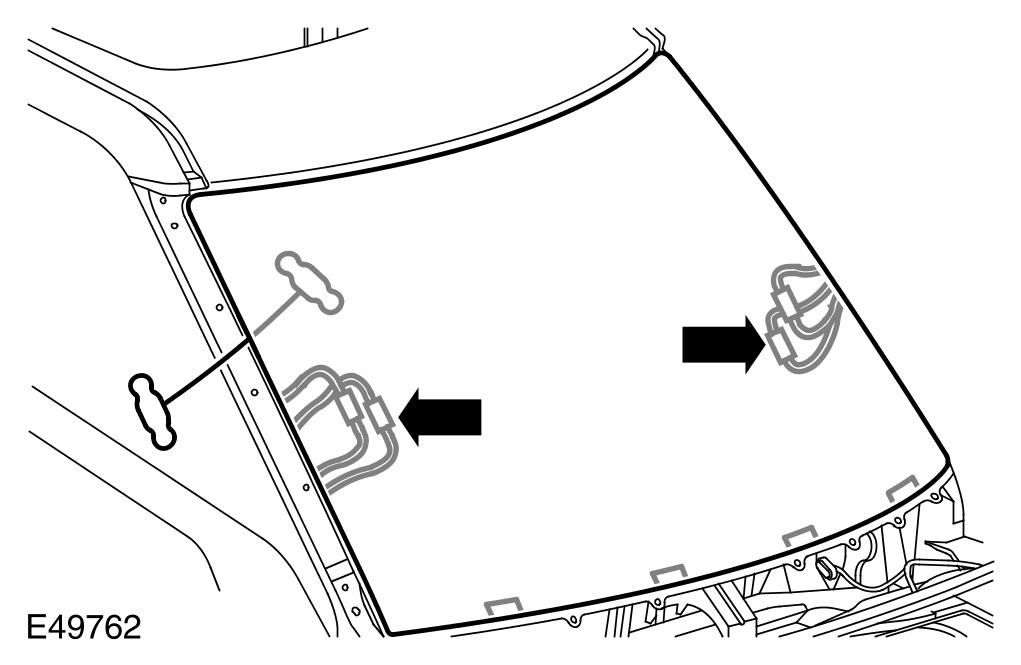 2 Remove both A-pillar upper trim panels. For additional information, refer to A-Pillar Trim Panel A-Pillar Trim Panel