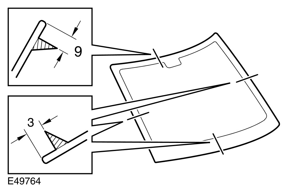 9 Apply a continuous bead of sealant to the windshield glass as shown.