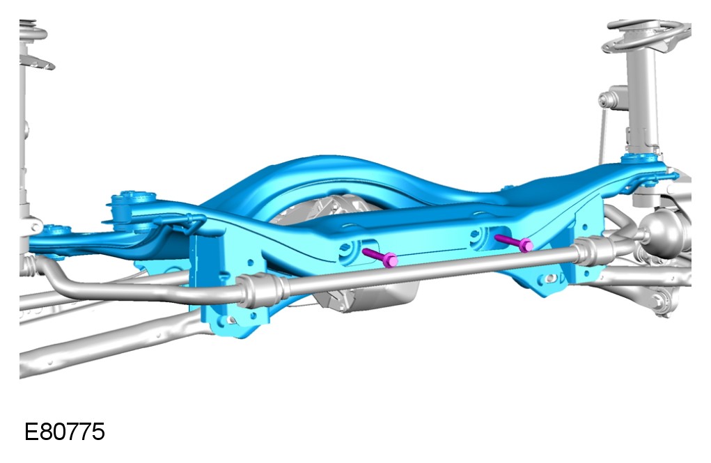 4 With assistance, position the subframe to the body and tighten the bolts.