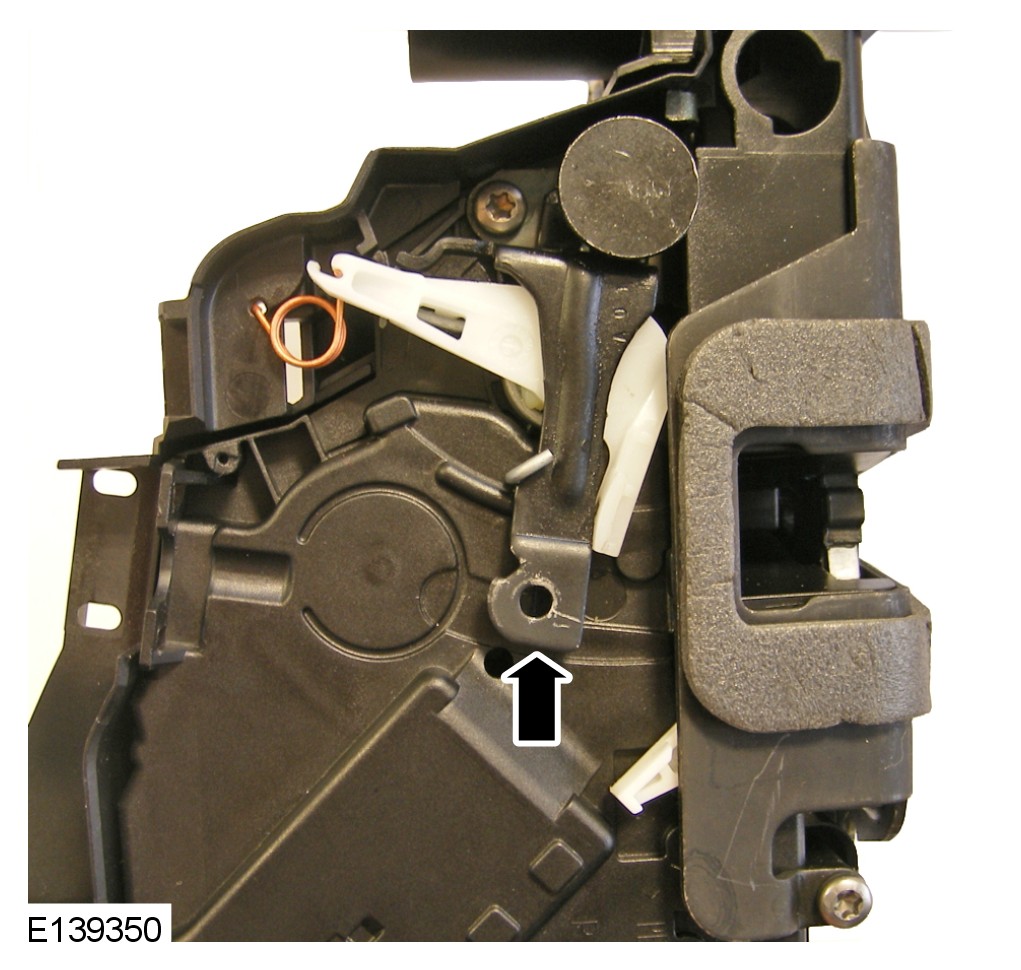 Whilst the latch is still in its unlocked state, push the latch interior release lever against its return spring, whilst simultaneously applying a light pressure to release the latch claw using a small screw driver or similar