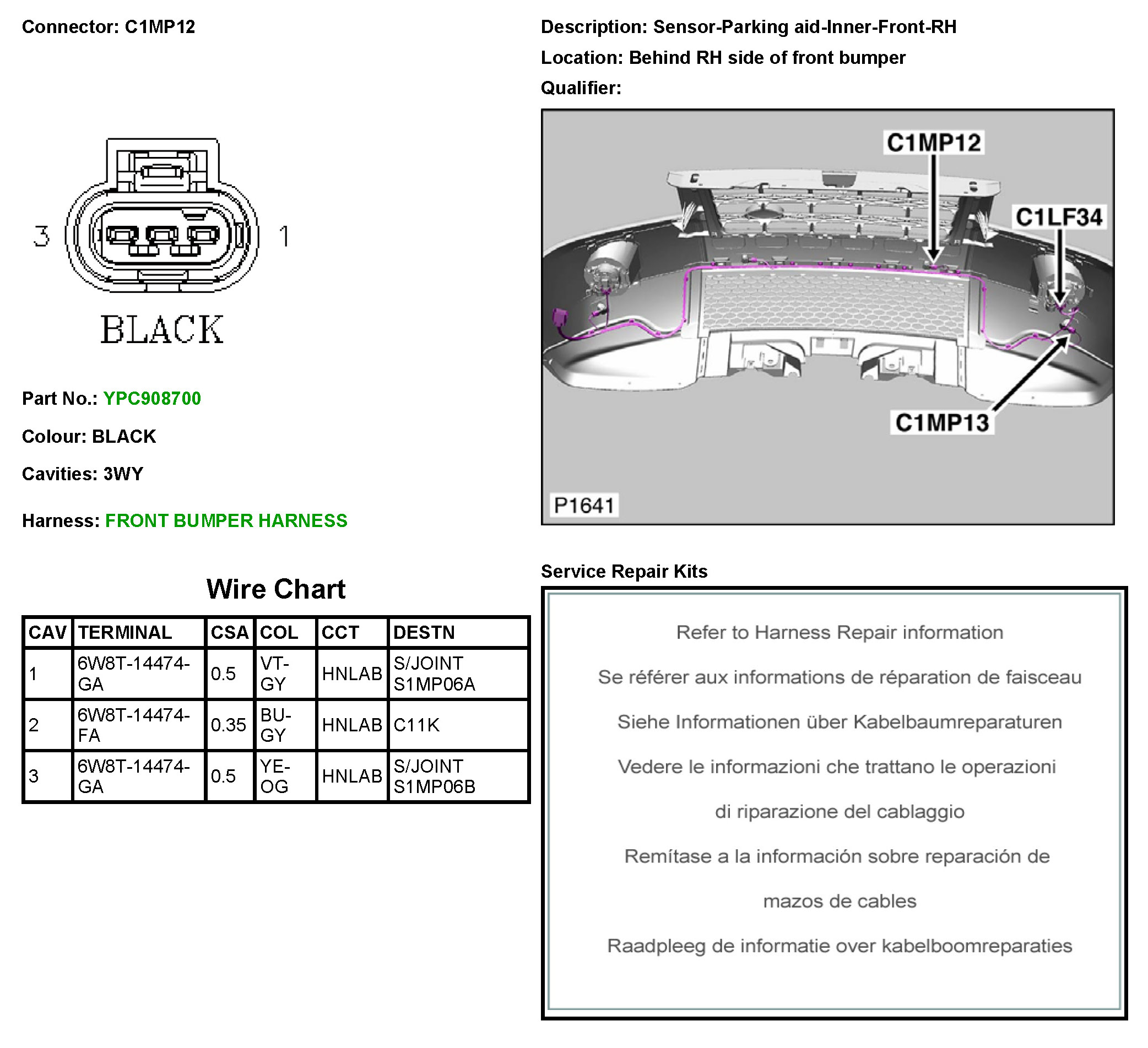 C1MP12 Sensor-Parking Aid-Inner-Front-RH