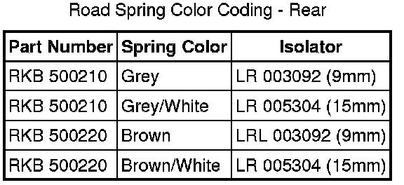 To maintain correct trim height make sure the spring colour and appropriate isolator is matched
