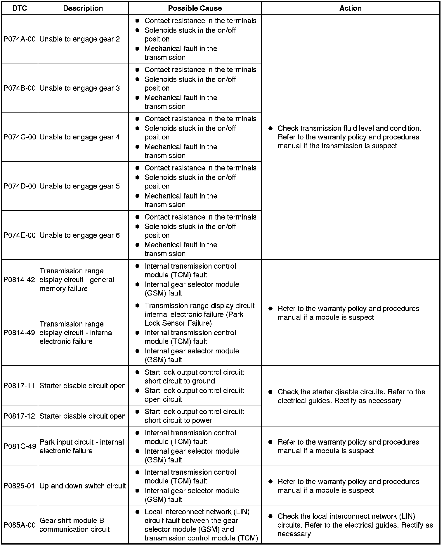 For a detailed description of the transmission control system, refer to the relevant Description and Operation section in this product. For additional information, refer to Transmission Description Description and Operation