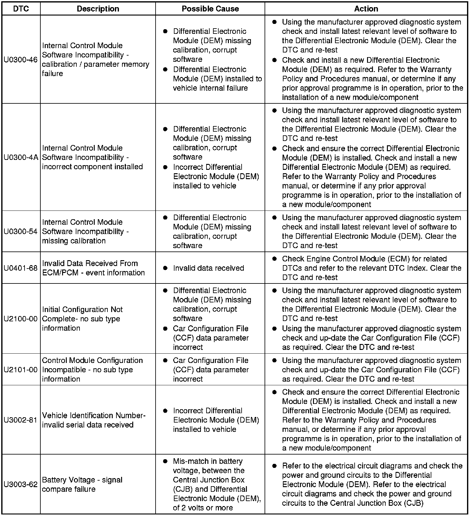 Generic scan tools may not read the codes listed, or may read only 5-digit codes. Match the 5 digits from the scan tool to the first 5 digits of the 7-digit code listed to identify the fault (the last 2 digits give extra information read by the manufacturer-approved diagnostic system).