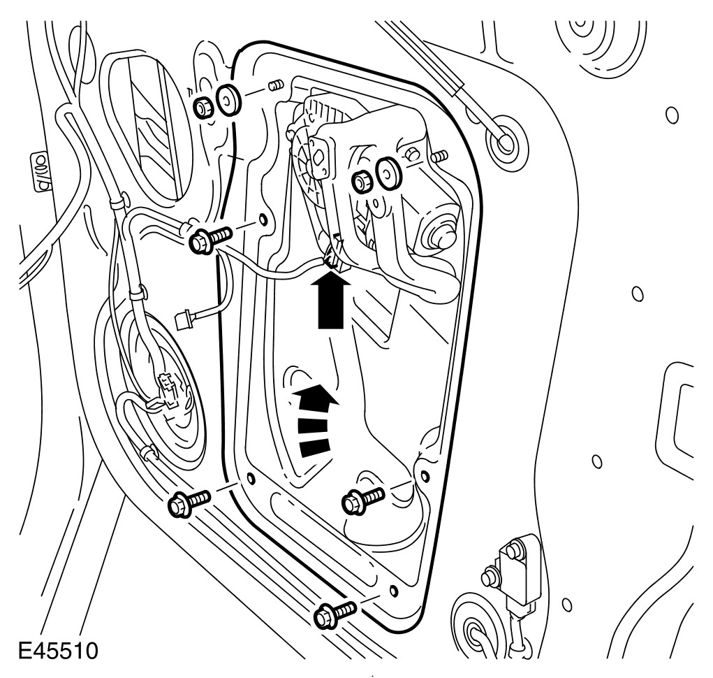 4 Install the front door window glass. For additional information, refer to Front Door Window Glass Service and Repair