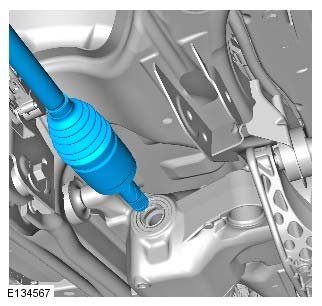 - Do not use a hammer to detach the halfshaft from the hub assembly, failure to follow this instruction may result in damage to the halfshaft.