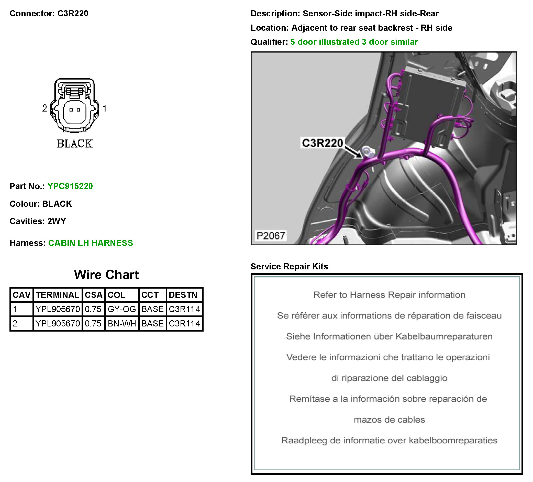 C3R220 Sensor-Side Impact-RH Side-Rear