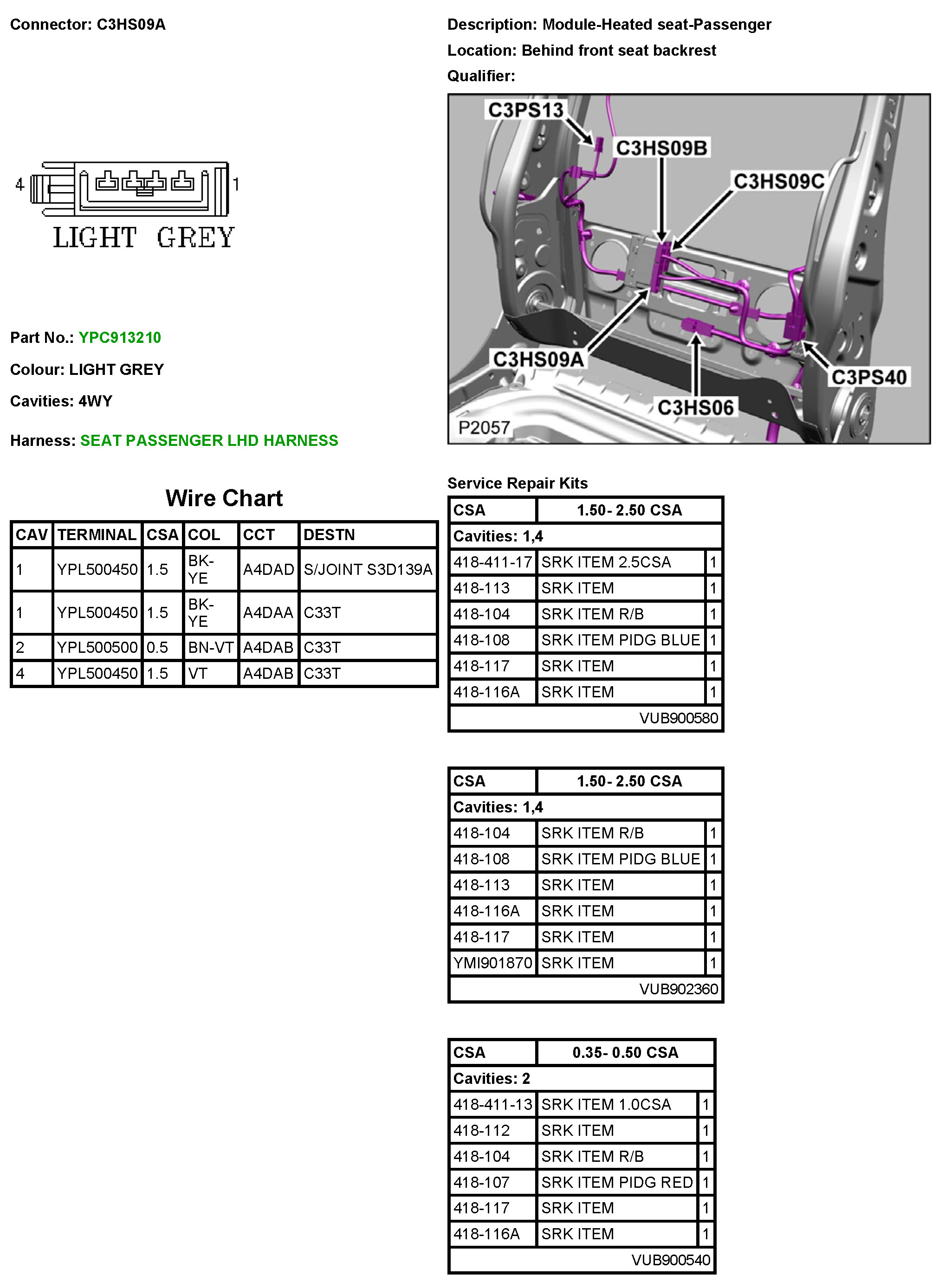 C3HS09A Module-Heated Seat-Passenger