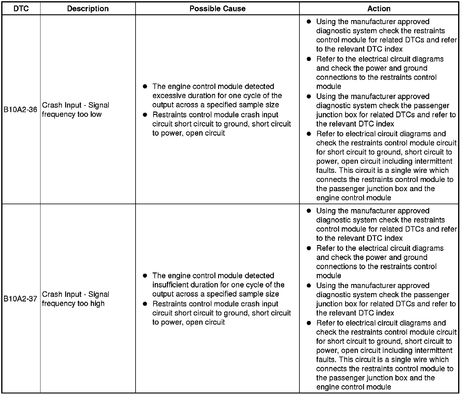 Diagnostic Trouble Code (DTC) Index [GTDi 2.0L Petrol, DTC: Engine Control Module (PCM), B1087-93 to P0200-81