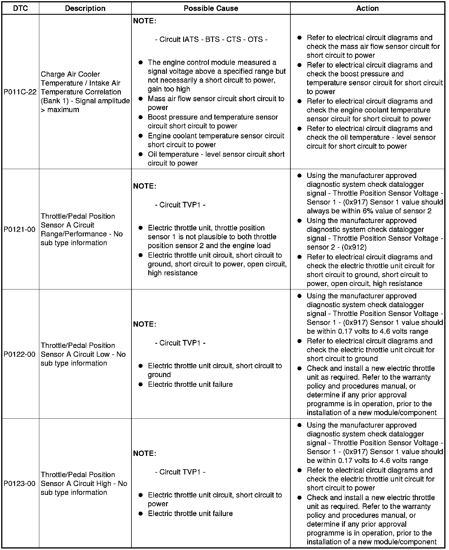 Generic scan tools may not read the codes listed, or may read only five digit codes. Match the five digits from the scan tool to the first five digits of the seven digit code listed to identify the fault (the last two digits give additional information read by the manufacturer-approved diagnostic system).