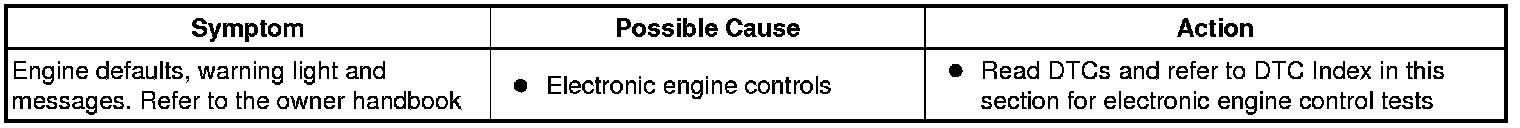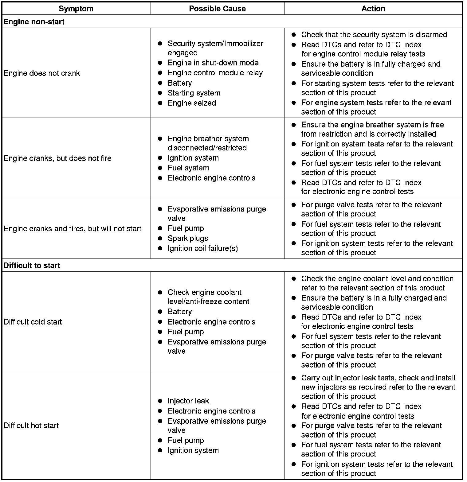 For a complete list of all diagnostic trouble codes that could be logged on this vehicle, please refer to Vehicle / A L L Diagnostic Trouble Codes ( DTC ). For additional information, refer to Diagnostic Trouble Code (DTC) Index - GTDi 2.0L Petrol, DTC: Engine Control Module (PCM), B1087-93 to P0200-81 Diagnostic Trouble Code (DTC) Index [GTDi 2.0L Petrol, DTC: Engine Control Module (PCM), B1087-93 to P0200-81
