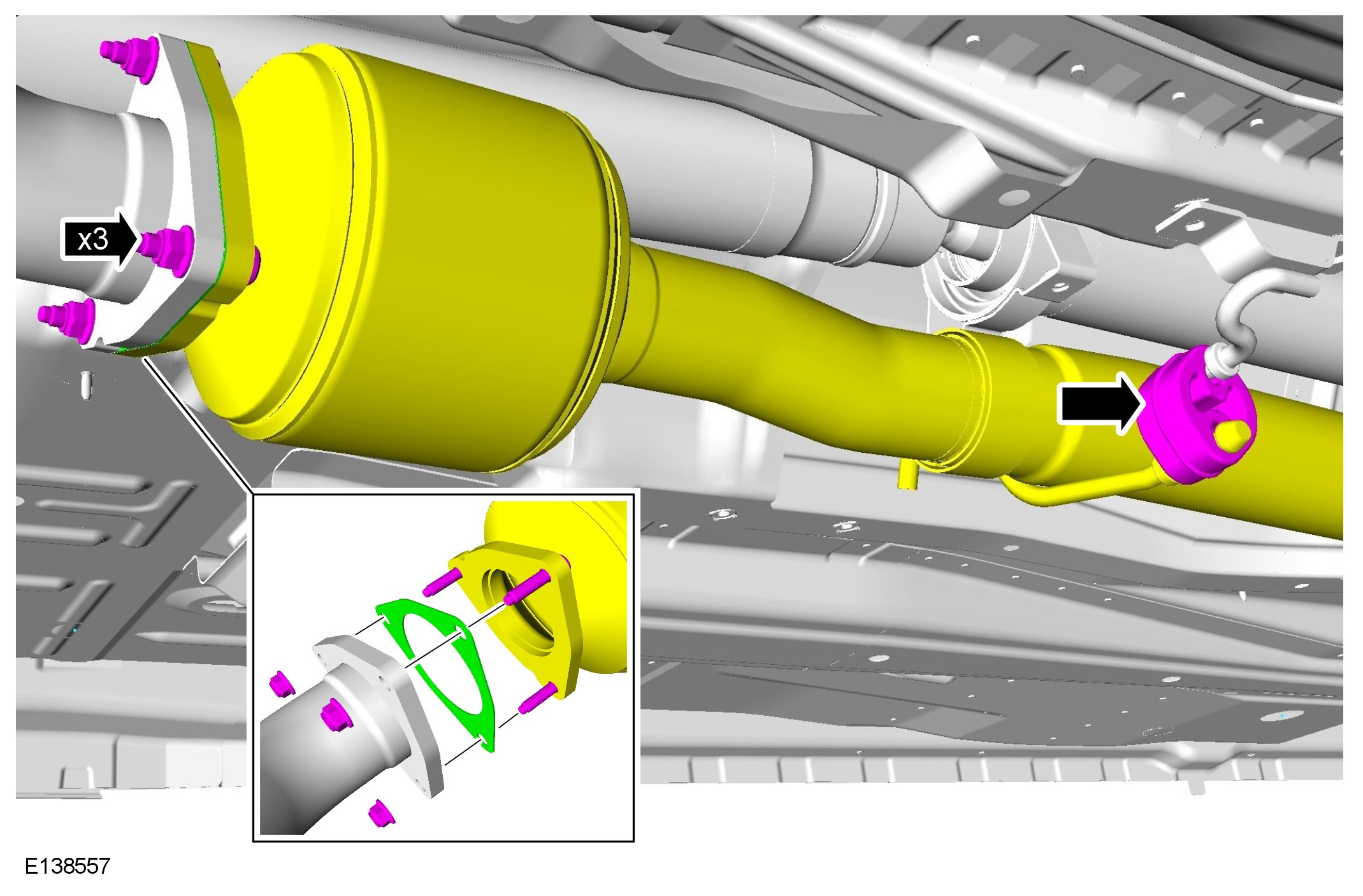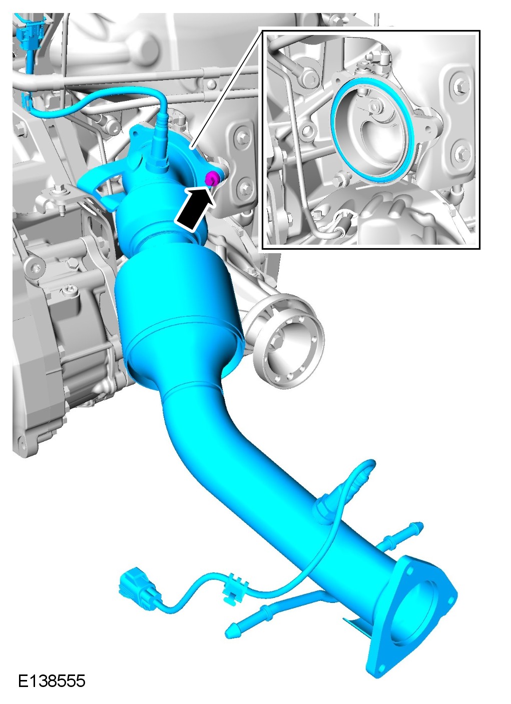 CAUTION: Loosen the lower retaining bolt no more than 5 turns (do not remove the retaining bolt). This will aid installation of the catalytic converter.