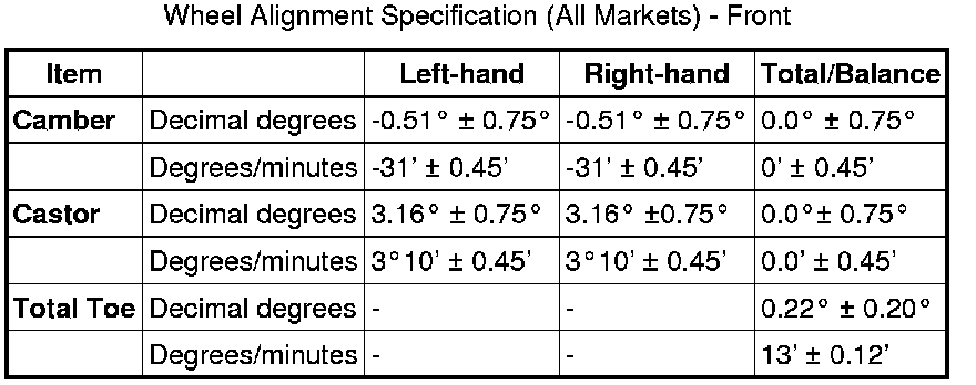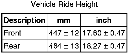 All figures are with vehicle at 'Showroom' ride height - full fluids, full tank of fuel, no occupants/luggage, tires inflated to normal pressures