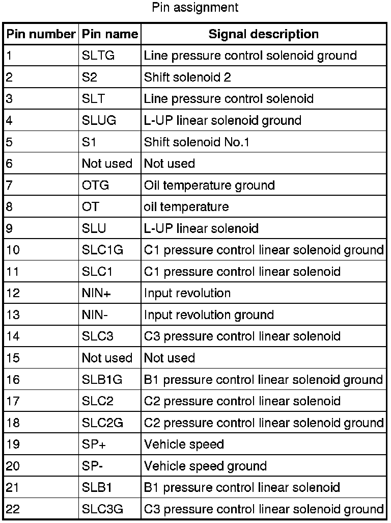 Transmission control module 22 way connector pin assignment
