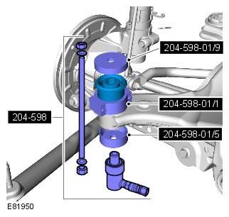 - Special tool 204-598-01/8 is used to start the bushing removal process, and must be removed after the bushing has released, as it will not pass through the subframe bushing aperture.