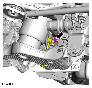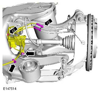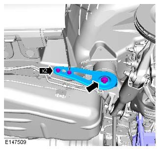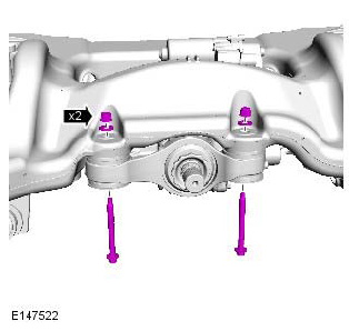 - Discard the lower control arm rear retaining nut and bolt.