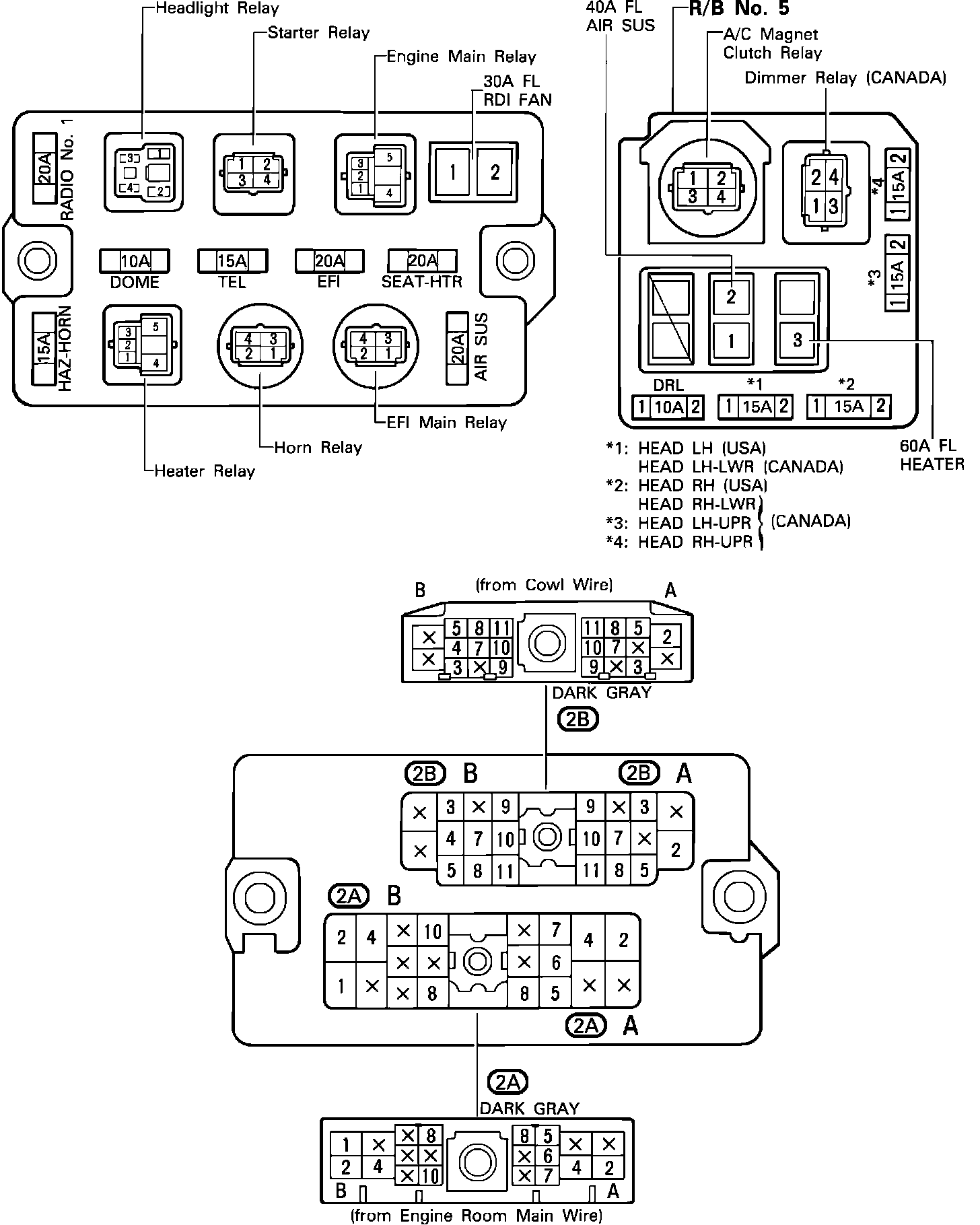 (J/B No.2) Engine Compartment Left Side - (R/B No.5) Near The J/B No.2: