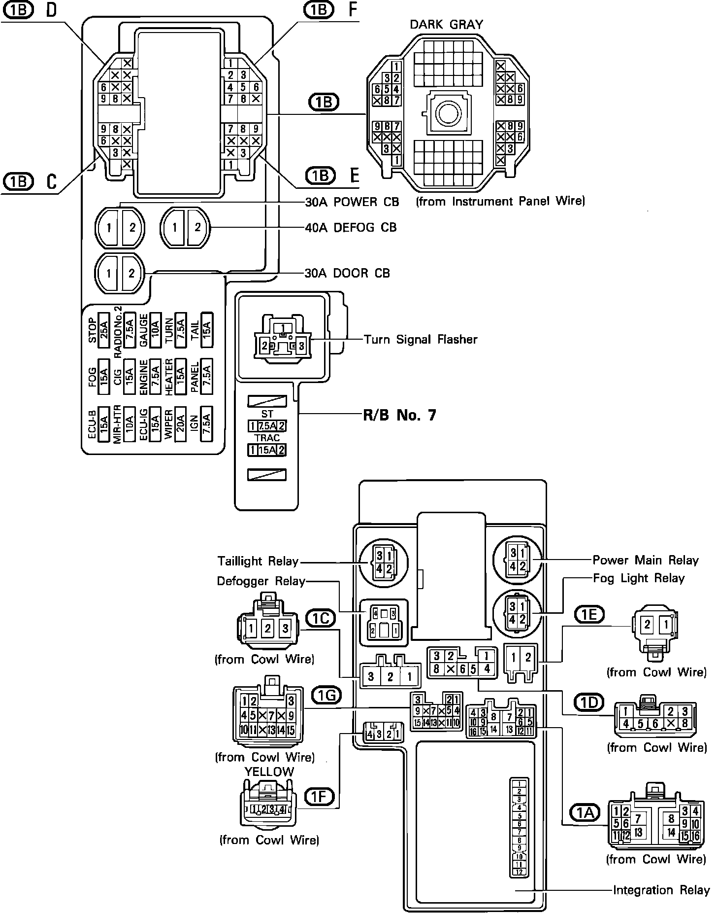 (J/B No.1) Left Side Of Steering Column Tube - (R/B No.7) Right Side Of J/B No.1: