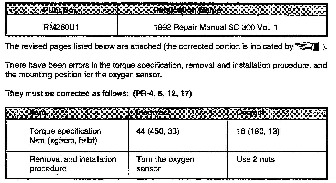 Additional repair manual correction pages are available through the Dealer Support Material Network (MDC NPM system) by ordering number 00246-B9154-RM260.