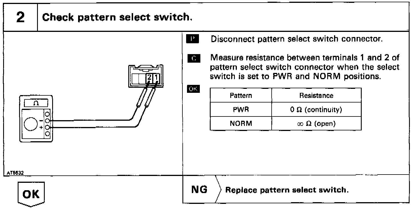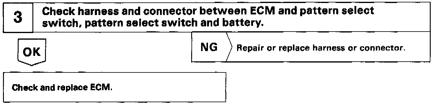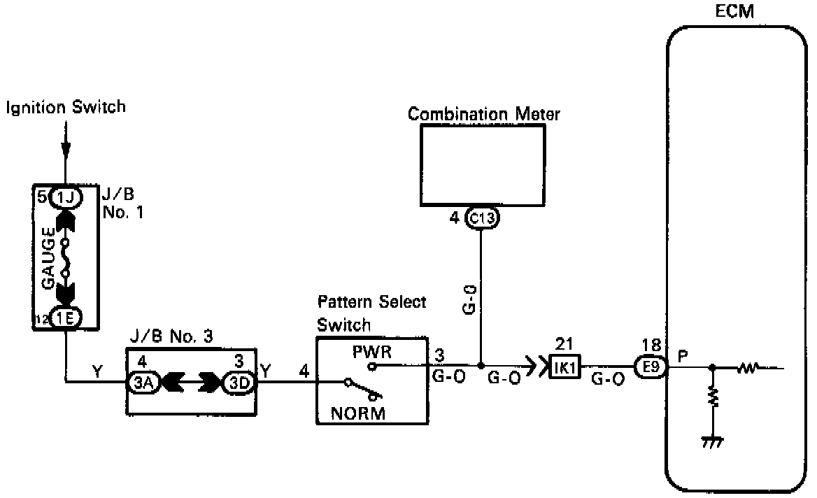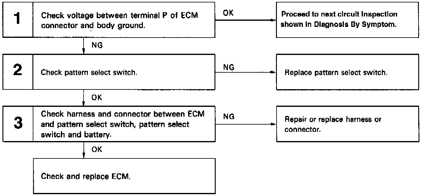 CIRCUIT DESCRIPTIONThe Engine Control Module (ECM) memory contains the shift programs for the NORMAL and POWER patterns, 2 position, and L position and the lockup patterns. Following the programs corresponding to the signals from the pattern select switch, the park/neutral position switch and other various sensors the ECM switches the solenoid valves ON and OFF, thereby controlling the transmission gear change and the lockup clutch operation.