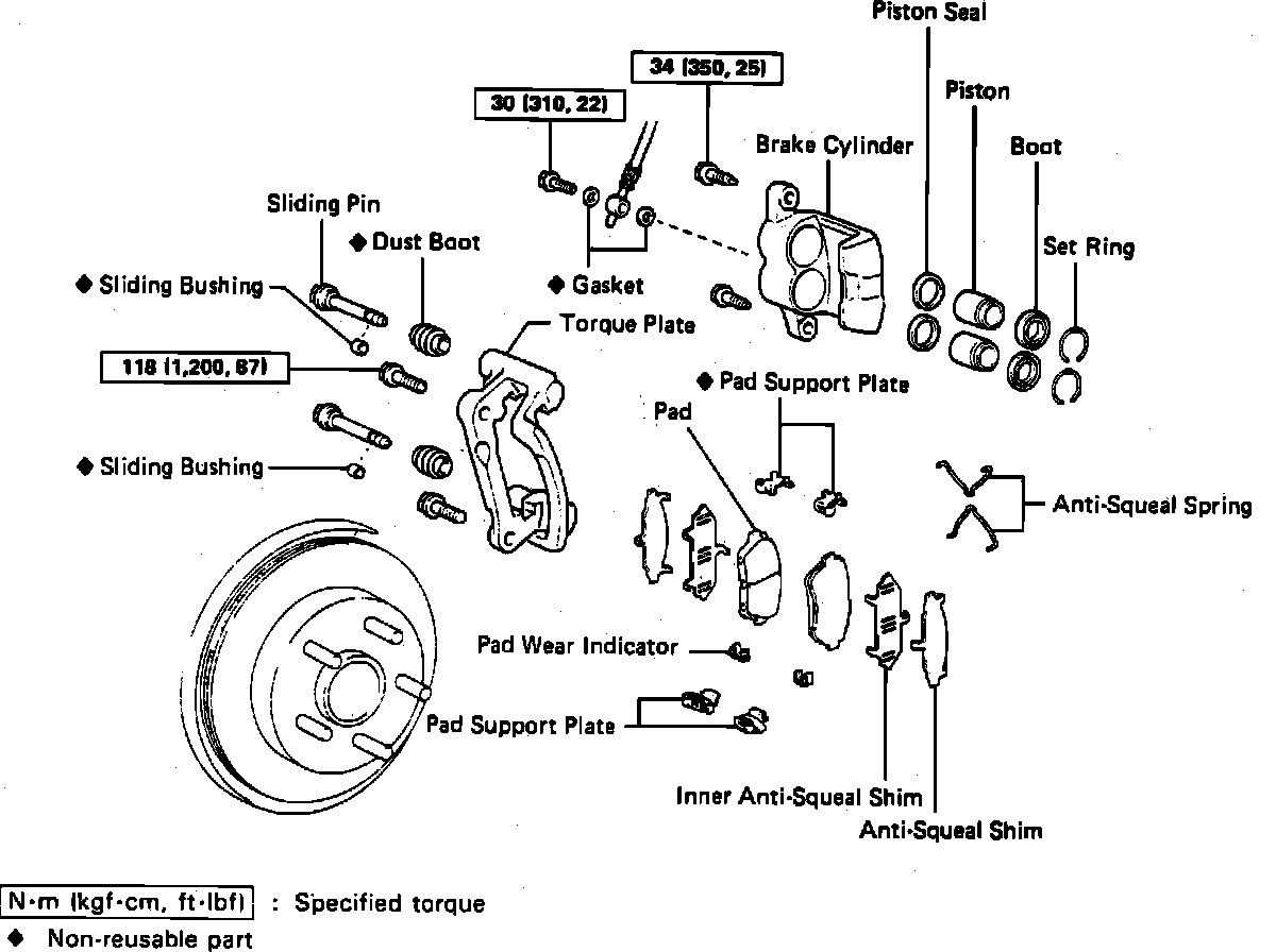 b. Apply disc brake grease to both anti-squeal shim. Then install shims on each pad.