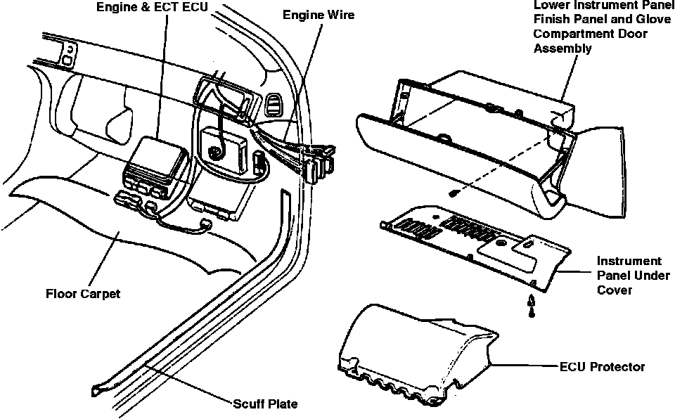 Fig. 8 Interior Components For Engine Wire Harness Removal: