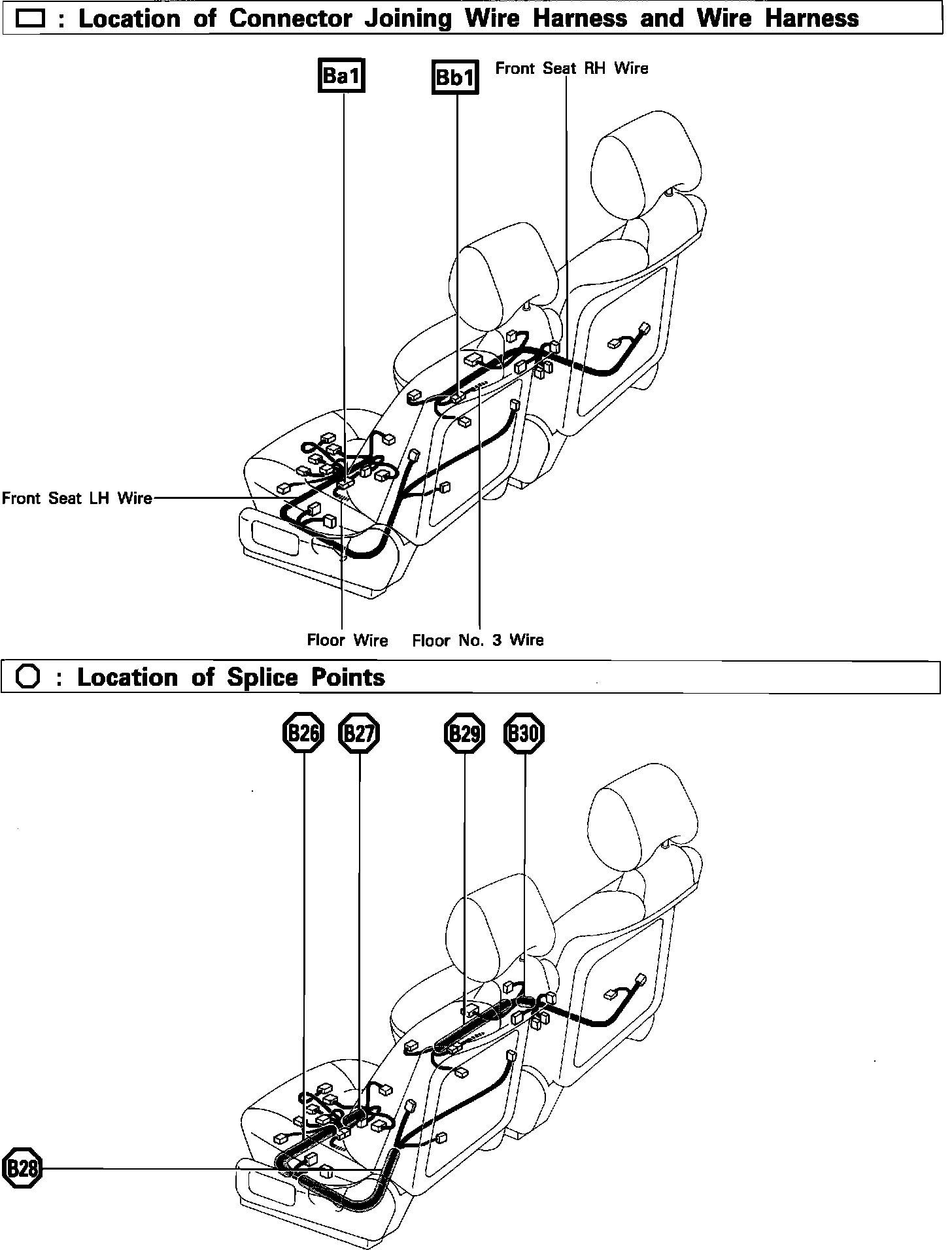 Location Of Connector Sub-harness And Main Harness, Location Of Splice Points:
