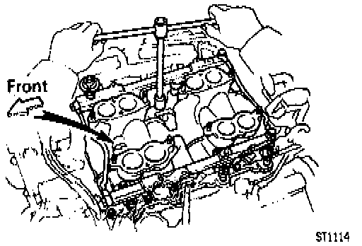 7. Temporarily install exhaust gas recirculation pipe to right hand cylinder head with the bolt.