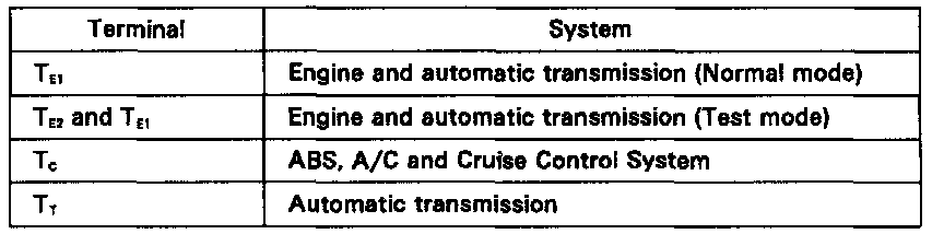 Connecting the following terminals of the DLC2 to terminal E1 selects the diagnosis mode shown.