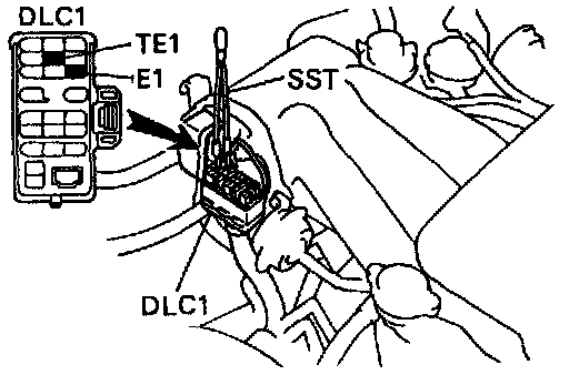 - Using SST (SST 09843-18020), connect terminal TE1 and E1 of the DLC1.