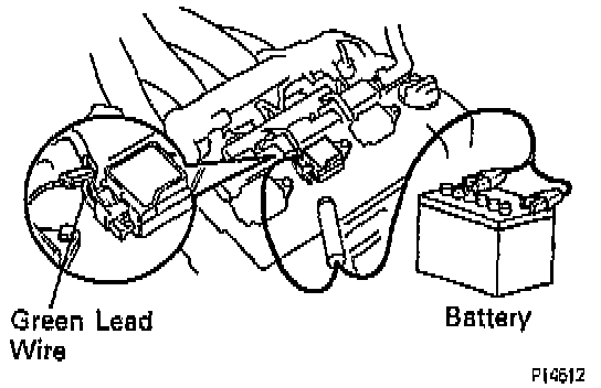 - Connect the timing light pickup clip to the the GREEN lead wire for the No.4 ignition coil.