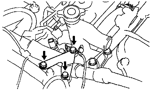 - Remove the 2 bolts, 2 nuts, 2 plate washers and water outlet.