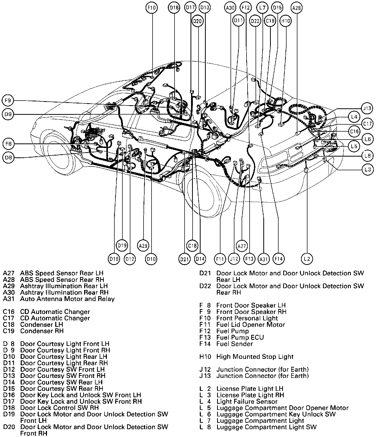 D22 Door Lock Motor and Door Unlock Detection SW Rear RH