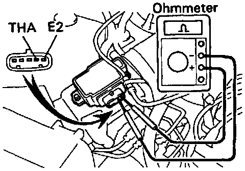 - Using an ohmmeter, measure the resistance between terminals THA and E2.