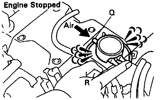 - Blow air into port Q, and check that the air passes through to the air filter side freely.