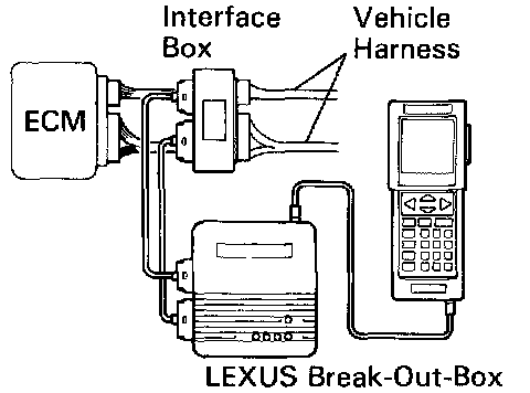 1. Hook up the LEXUS break-out-box and LEXUS hand-held tester to the vehicle.