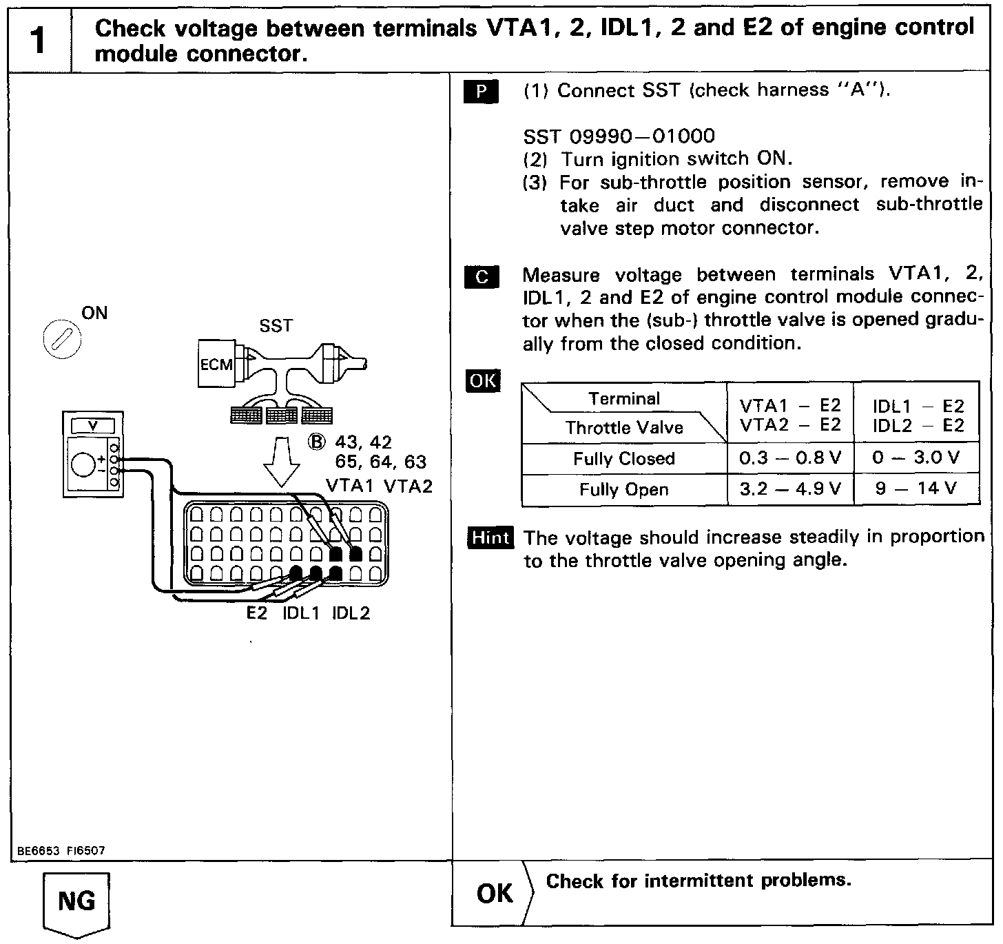 HINT:- If diagnostic trouble code 41 is displayed, check throttle position sensor circuit. If diagnostic trouble code 47 is displayed, check sub-throttle position sensor circuit.