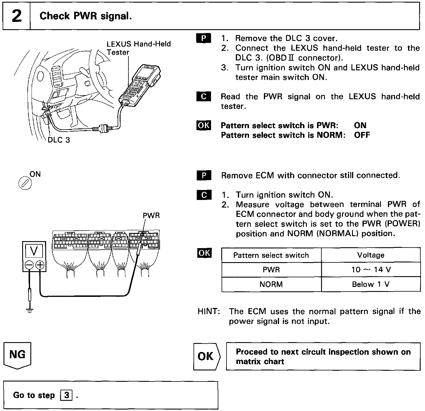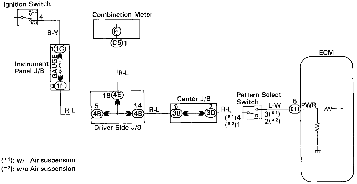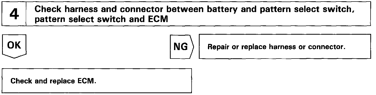 CIRCUIT DESCRIPTIONThe Engine Control Module (ECM) memory contains the shift programs for the NORMAL and POWER patterns, 2 position, and L position and the lock-up patterns. Following the programs corresponding to the signals from the pattern select switch, the park/neutral position switch and other various sensors, the ECM switches the solenoid valves ON and OFF, and control the transmission gear change and the lock-up clutch operation.