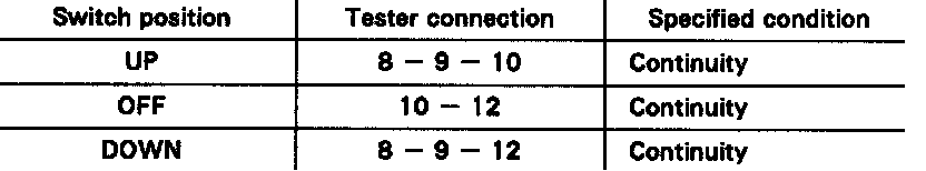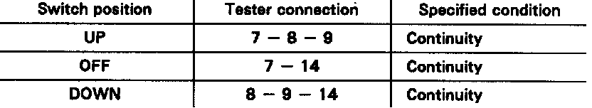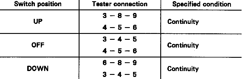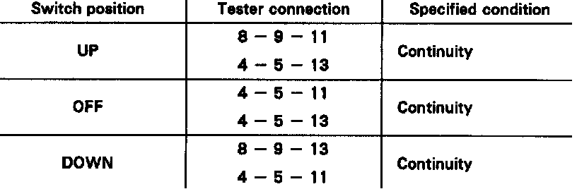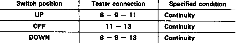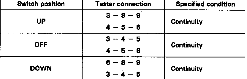 If continuity is not as specified, relace the master switch.