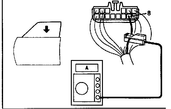 (b) Attach a current-measuring probe to terminal 8 of the wire harness.