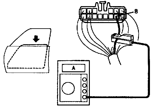 (e) Check that the current increases up to approximately 14.5A or more when the window stops going down.