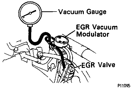 - Using a 3-way connector, connect a vacuum gauge to the hose between the EGR valve and EGR vacuum modulator.