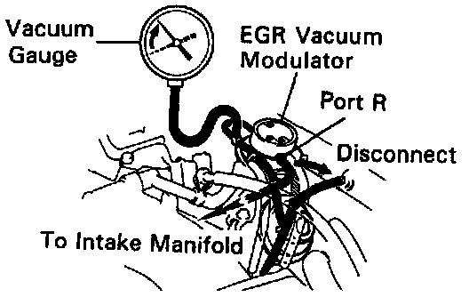 - Disconnect the vacuum hose from port R of the EGR vacuum modulator and connect port R directly to the intake manifold with another hose.