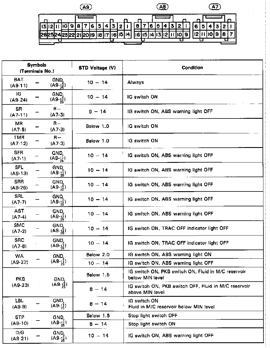 Fig. 35 ABS & TRAC ECU Terminal Identification & Values (Part 1 Of 2):