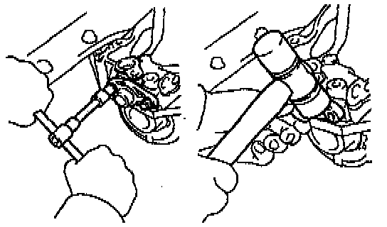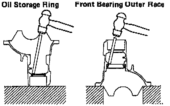 b. Using a brass bar and hammer, remove the oil storage ring and front bearing outer race.