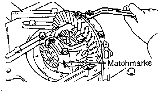 c. Remove the ring gear 10 set bolts and 5 lock plates.