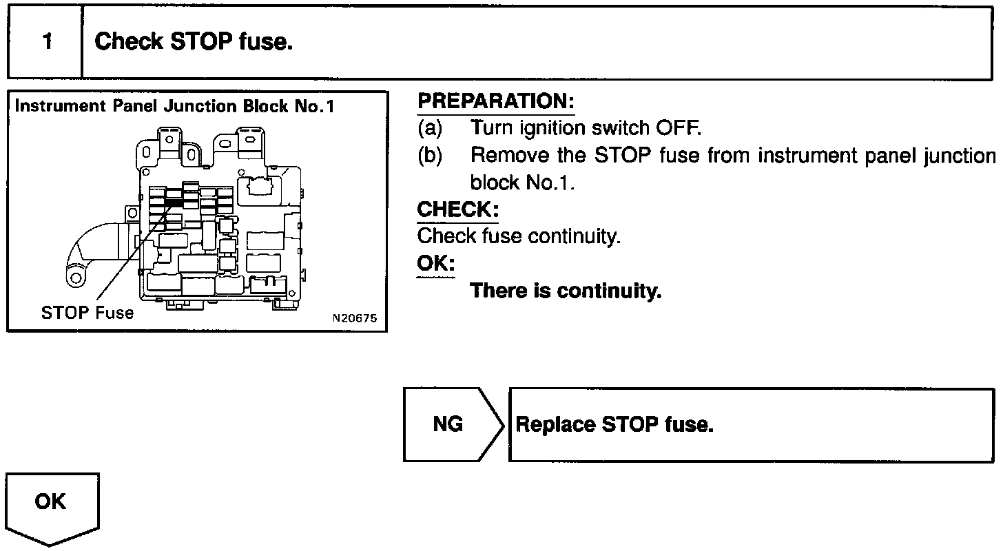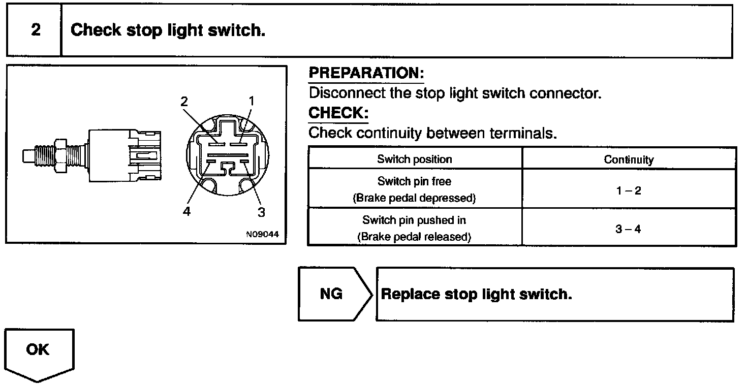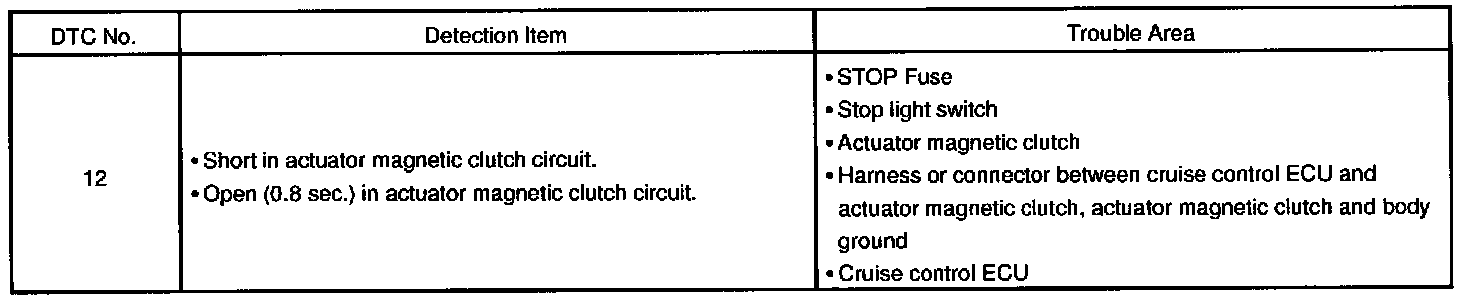 When the brake pedal is depressed, the stop light switch turns on, supplying electrical power to the stop light. Power supply to the magnetic clutch is mechanically cut and the magnetic clutch is turned OFF When driving downhill, if the vehicle speed exceeds the set speed by 15 km/h (9 mph), the ECU turns the safety magnet clutch OFF If the vehicle speed later drops to within 10 km/h (6 mph) above the set speed, then cruise control at the set speed is resumed.