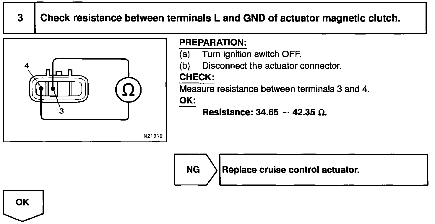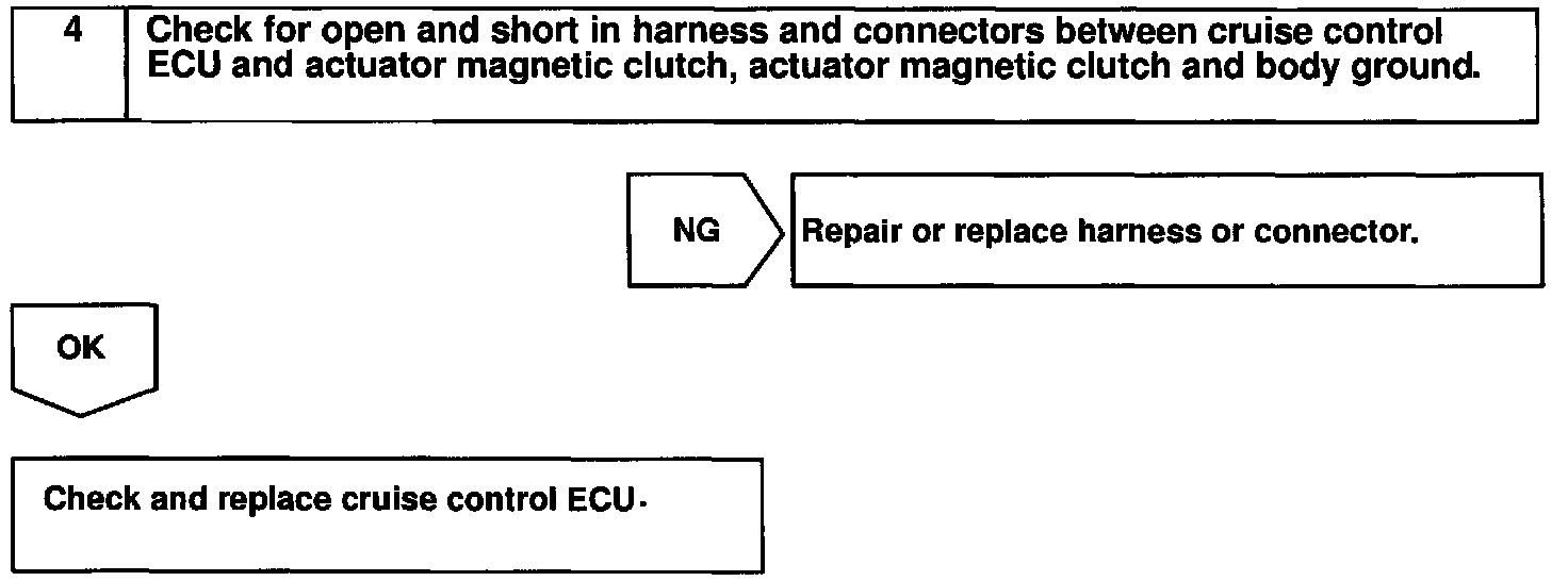This circuit turns on the magnetic clutch inside the actuator during cruise control operation according to the signal from the ECU. If a malfunction occurs in the actuator or speed sensor, etc. during cruise control operation, the rotor shaft between the motor and control plate is released.